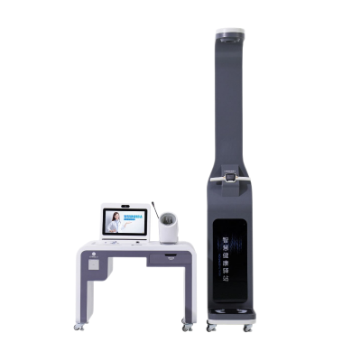 身高、體重、體質指數BMI、血壓(脈搏波)、脈率、血氧飽和度、血糖(空腹、餐后、隨機)、尿酸、膽固醇、美國卡迪克血脂四項(高密度脂蛋白、低密度脂蛋白、總膽固醇、甘油三酯)脂肪含量、水分含量、基礎代謝、體型判斷、腰圍、臀圍、腰臀比、心電:六導和十二導心電、體溫、中醫體質辨識 ,前置高清攝像頭。A4打印報告、身份證刷卡登錄、數據查詢、數據統計等